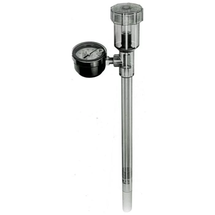 For field or container applications, install in soil for continuous readings. A sealed water-filled tube with a special vacuum gauge and porous tip, works upon the tensiometer principle. As water is drawn from the soil by the roots, a partial vacuum is created, and pressure is recorded on the gauge. Low readings indicate waterlogged soil that has inadequate root aeration.